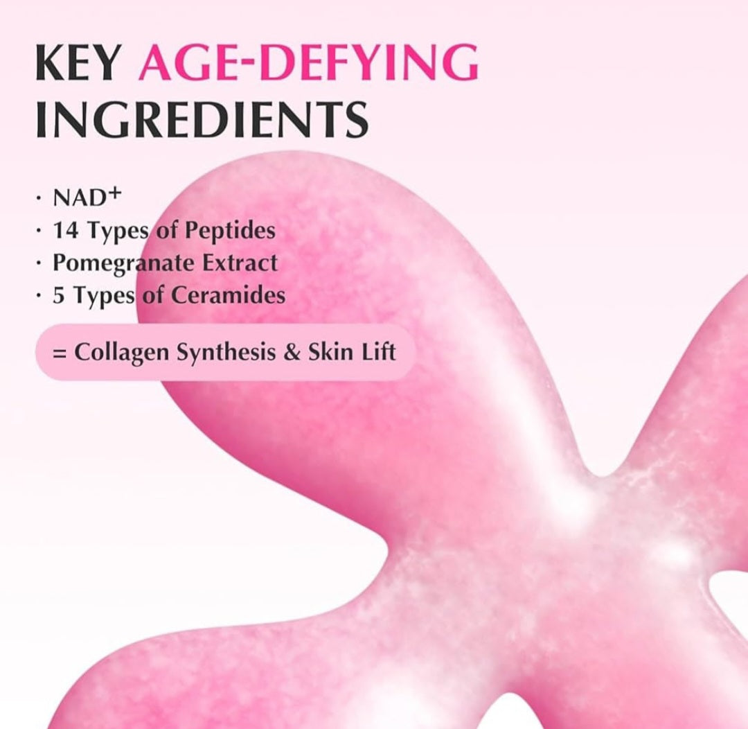 Water, Butylene Glycol, Glycerin, Cetyl Ethylhexanoate, 1,2-Hexanediol, Niacinamide, Hydrogenated Lecithin, Pentaerythrityl Tetrabehenate, Betaine, Diethoxyethyl Succinate, Ceramide NP, Hydroxyethyl Urea, Panthenol, Cetearyl Alcohol, Squalane, Carbomer, Butyrospermum Parkii (Shea) Butter, Tromethamine, Xanthan Gum, Allantoin, Nicotinamide Adenine Dinucleotide, Ethylhexylglycerin, Adenosine, Disodium Edta, Nicotinamide Mononucleotide, Cyanocobalamin, 2,3-Butanediol, Dipropylene Glycol, Caprylyl Glycol, Sodium Hyaluronate, Rubus Fruticosus (Blackberry) Fruit Extract, Vaccinium Macrocarpon (Cranberry) Fruit Extract, Vaccinium Angustifolium (Blueberry) Fruit Extract, Rubus Idaeus (Raspberry) Fruit Extract, Sambucus Nigra Fruit Extract, Punica Granatum Fruit Extract, Polyglyceryl-10 Laurate, Octyldodecanol, Polyglyceryl-4 Caprate, Glyceryl Stearate, Methylpropanediol, Copper Tripeptide-1, Acetyl Hexapeptide-8, Palmitoyl Pentapeptide-4, Palmitoyl Tripeptide-1, Hydrolyzed Hyaluronic Acid, Hydrolyzed Sodium Hyaluronate, Hyaluronic Acid, Hydroxypropyltrimonium Hyaluronate, Potassium Hyaluronate, Ceramide NS, Ceramide AS, Ceramide AP, Cholesterol, Tripeptide-1, Hexapeptide-9, Pentylene Glycol, Astaxanthin, Sodium Hyaluronate Crosspolymer, Nonapeptide-1, Sodium Acetylated Hyaluronate, Soluble Collagen, Oligopeptide-32, Oligopeptide-29, Acetyl Tetrapeptide-2, Acetyl Tetrapeptide-3, Acetyl Octapeptide-3, Palmitoyl Tetrapeptide-7, Oligopeptide-6, Ceramide Eop